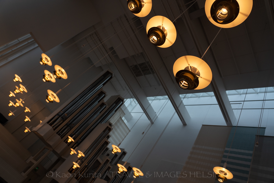 教会は、ロウヘラ駅横に1984年に建てられたもの。設計は、聖堂建築作家としても知られるユハ・レイヴィスカ。日本の観光客にも、人気のある教会です。レイヴィスカはコンペ提出時、このデザイン案を「陽光」と名付けました。外から差込む陽と、規則的に下がるランプが教会内を明るくします。 ちなみに、この写真が撮られた日は雪でした。