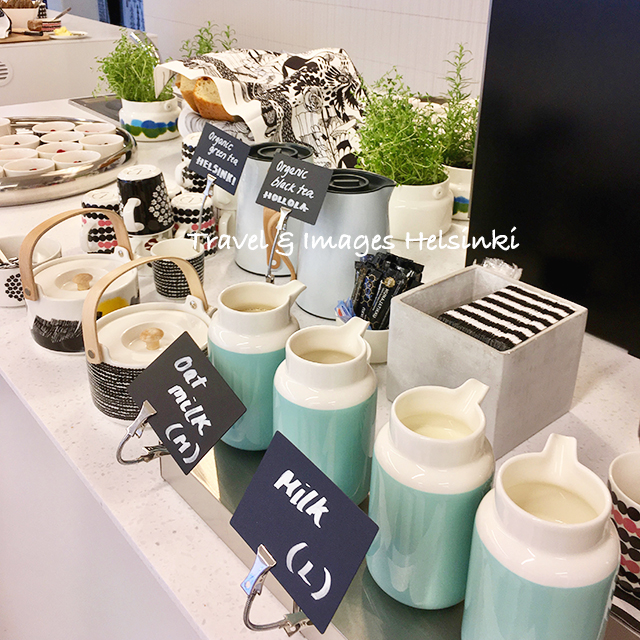 コーヒーは、フィルターコーヒーが置いてあるのではなく、自販機のようなサーバーから作ります。これもおいしいです。ただ、パネル式で少しわかりにくいかもしれません。ミルクなどは、サーバーの横にあります。